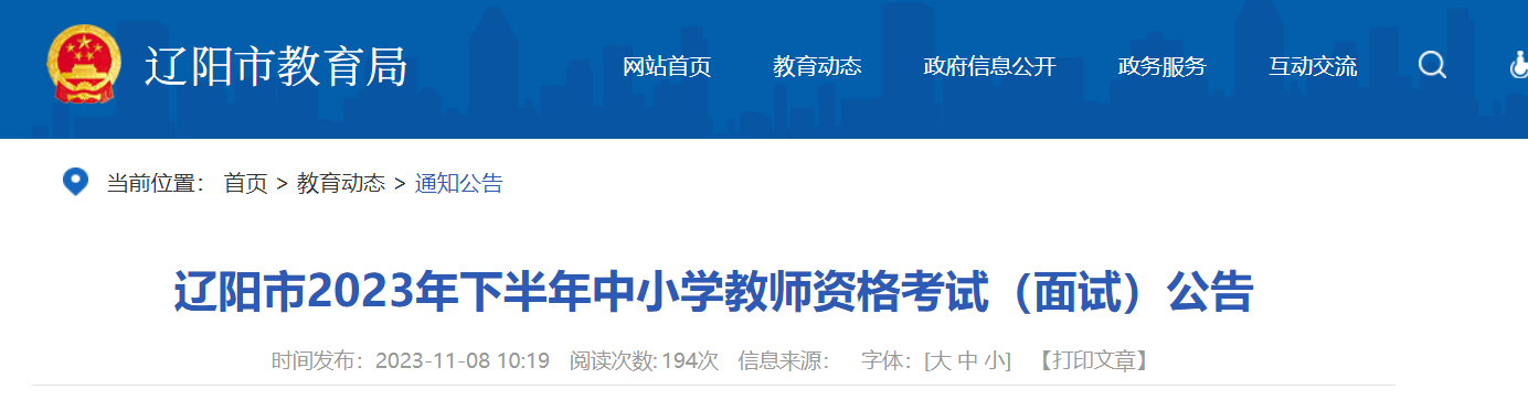 從遼陽市教育局獲悉,2023下半年遼寧遼陽中小學(xué)教師資格考試面試公告已公布,11月13日17:00截止報(bào)名確認(rèn),具體詳情如下: