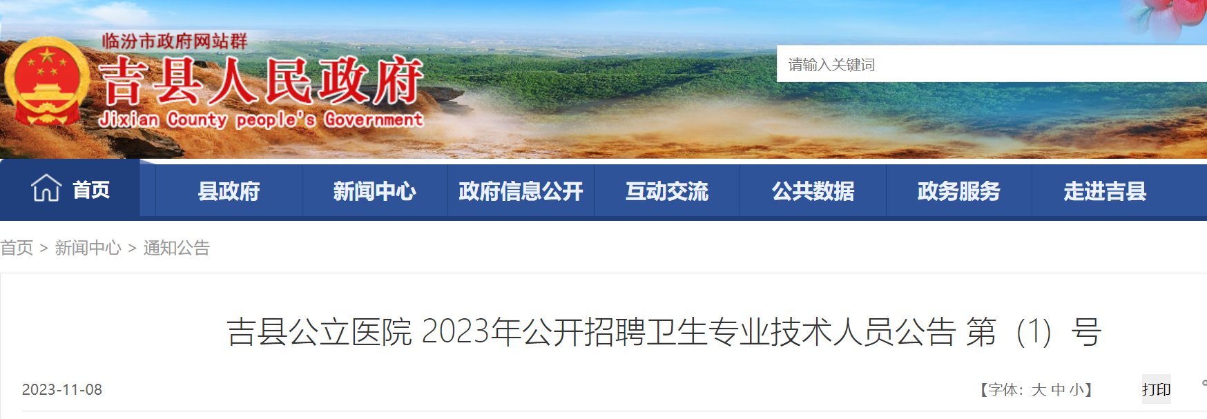 本次招聘在吉縣人民政府網(wǎng)發(fā)布招聘公告。