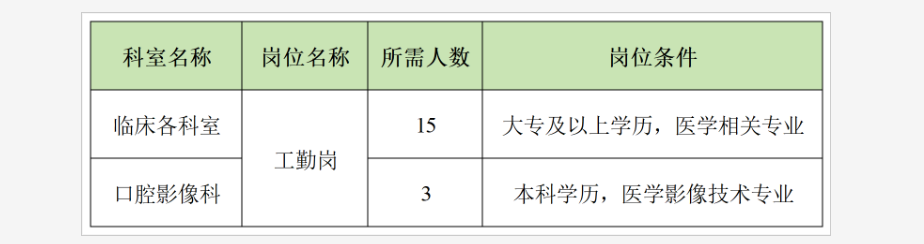 根據(jù)我院學科發(fā)展規(guī)劃,現(xiàn)面向社會公開招聘工勤崗18人,用工形式為勞務(wù)派遣,招聘對象為普通高等院校應、往屆畢業(yè)生,具體招聘崗位及要求詳見表格。