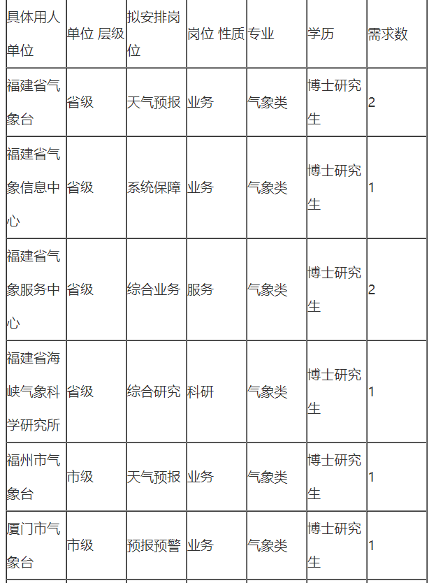 考察、體檢合格,且符合崗位各項條件要求的擬聘用人選在中國氣象局網站、氣象人才招聘網和福建省氣象局網站進行7個工作日的公示。