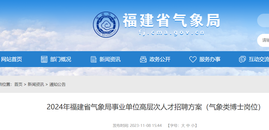 招聘信息在中國氣象局網站(www.cma.gov.cn)、氣象人才招聘網(zp.cmatec.cn)和福建省氣象局網站(fj.cma.gov.cn)公開發(fā)布。