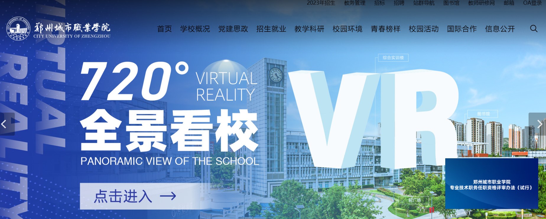 鄭州城市職業(yè)學(xué)院,位于河南省鄭州市新密市溱水路618號(hào),是經(jīng)河南省人民政府批準(zhǔn)、教育部備案的普通高等職業(yè)院校。截至2022年5月,學(xué)院設(shè)6個(gè)院系,40多個(gè)專業(yè)及方向;全日制普通在校生1萬5千余人。搜集的鄭州城市職業(yè)學(xué)院網(wǎng)站網(wǎng)址,僅供大家參考!