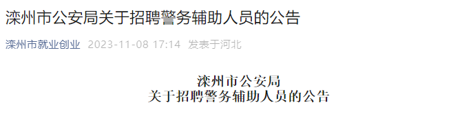 從灤州市就業(yè)創(chuàng)業(yè)官方微信了解到,2023年河北唐山灤州市公安局招聘警務輔助人員100人,相關事宜詳情如下:
