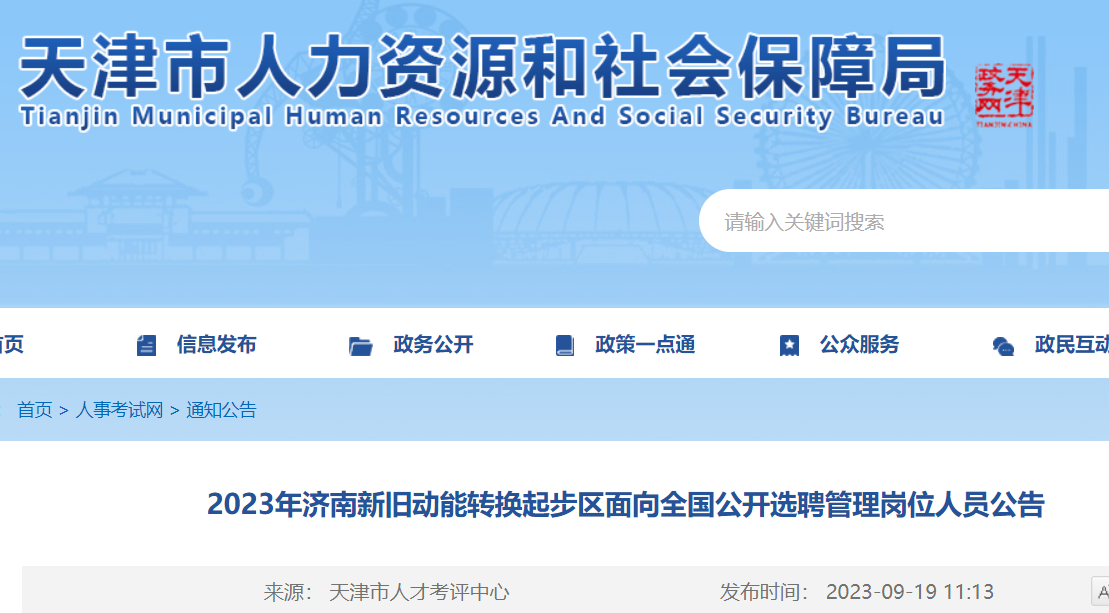 小編根據(jù)天津市人力資源和社會保障局發(fā)布“2023年濟(jì)南新舊動能轉(zhuǎn)換起步區(qū)面向全國公開選聘管理崗位人員公告”得知,2023山東濟(jì)南新舊動能轉(zhuǎn)換起步區(qū)面向全國選聘管理崗位人員10人,報名時間為2023年9月23日-10月13日,詳情如下:
