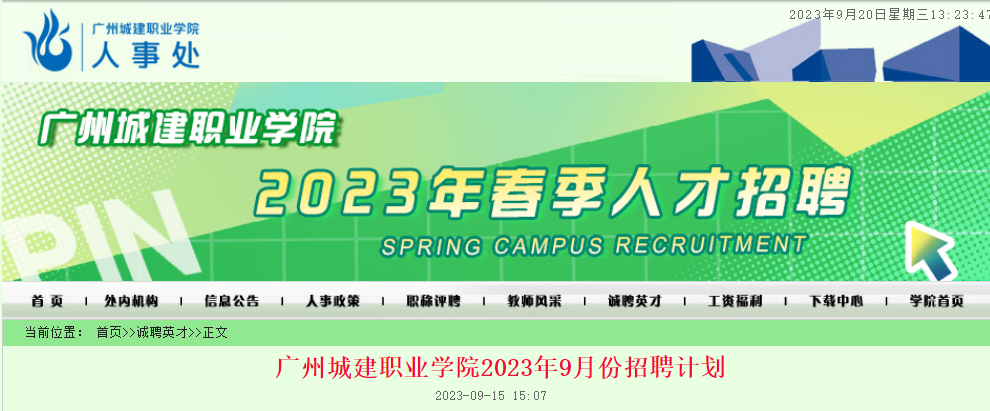 2023年9月廣東廣州城建職業(yè)學(xué)院招聘123人,有意者請將個(gè)人詳細(xì)簡歷以電子郵件方式發(fā)到學(xué)院人事處郵箱,現(xiàn)將招聘公告原文發(fā)布如下: