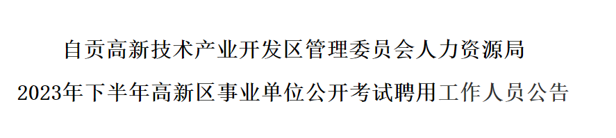 小編根據(jù)自貢人事考試網(wǎng)發(fā)布”2023年下半年高新區(qū)事業(yè)單位公開考試聘用工作人員公告“得知,2023下半年四川自貢高新區(qū)事業(yè)單位考試聘用人員17人,報名時間為2023年10月7日至10月11日。