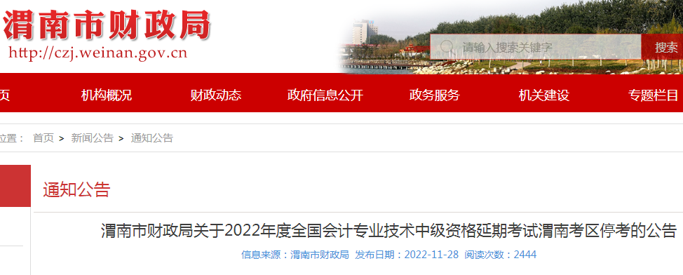小編根據(jù)渭南市財(cái)政局發(fā)布“關(guān)于2022年度全國會(huì)計(jì)專業(yè)技術(shù)中級(jí)資格延期考試渭南考區(qū)停考的公告”得知,原定于12月3日至4日舉行的2022年度全國會(huì)計(jì)專業(yè)技術(shù)中級(jí)資格延期考試渭南考區(qū)予以停止考試。