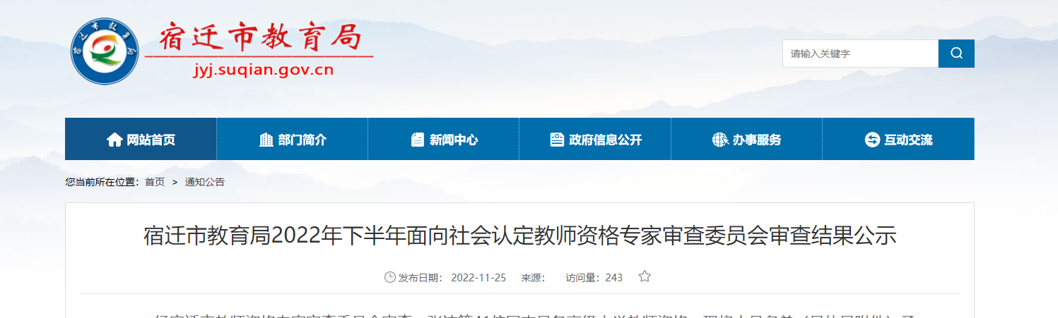 原文標(biāo)題:宿遷市教育局2022年下半年面向社會認(rèn)定教師資格專家審查委員會審查結(jié)果公示