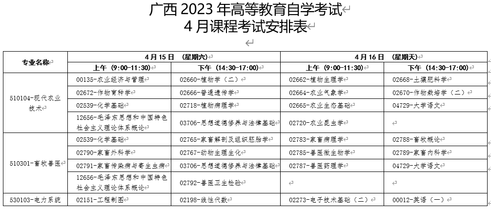 點(diǎn)擊查看》》廣西2023年高等教育自學(xué)考試4月課程考試安排表