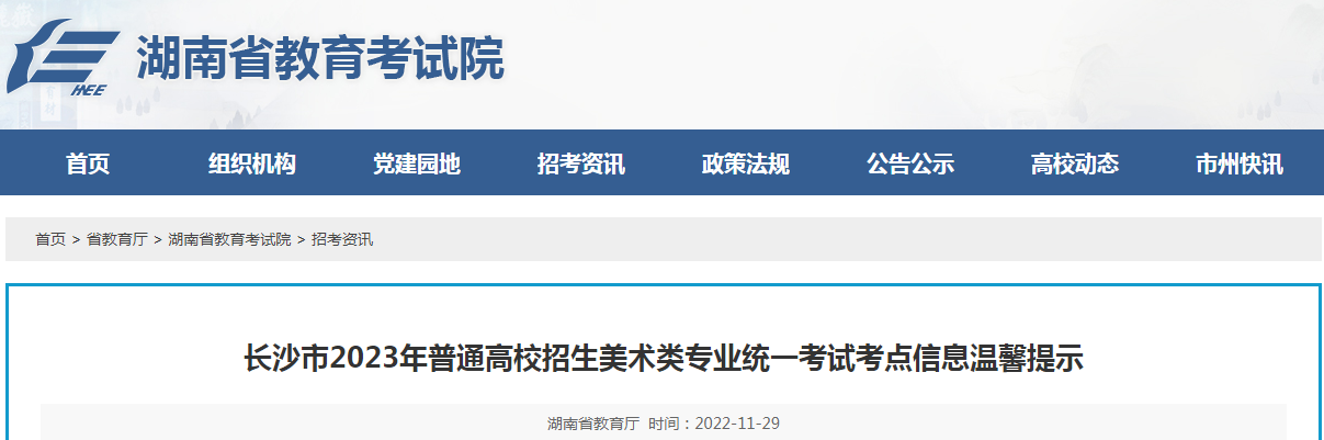 從湖南省教育考試院了解到,湖南長沙2023年普通高校招生美術類專業(yè)統(tǒng)一考試考點信息溫馨提示已發(fā)布,詳細內(nèi)容如下:
