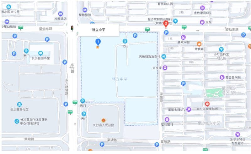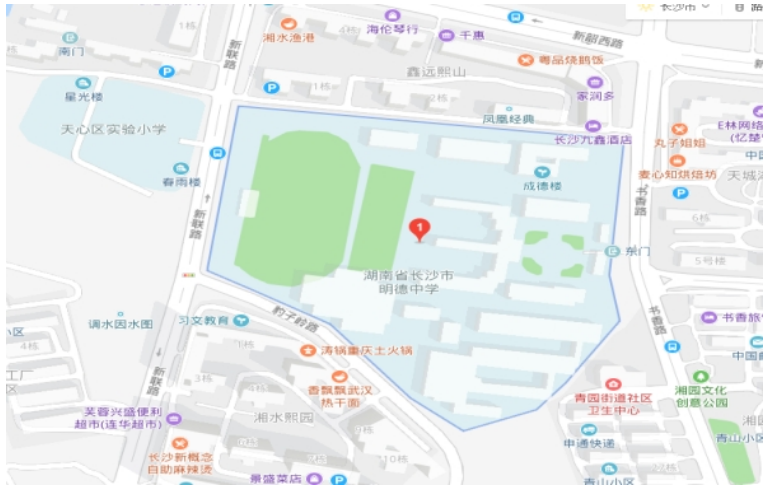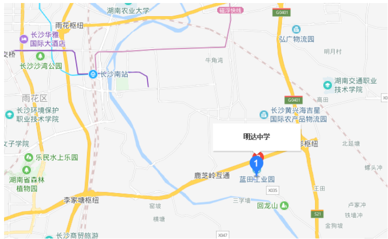 (1)導航搜索“雅禮洋湖實驗中學(公交站)”
