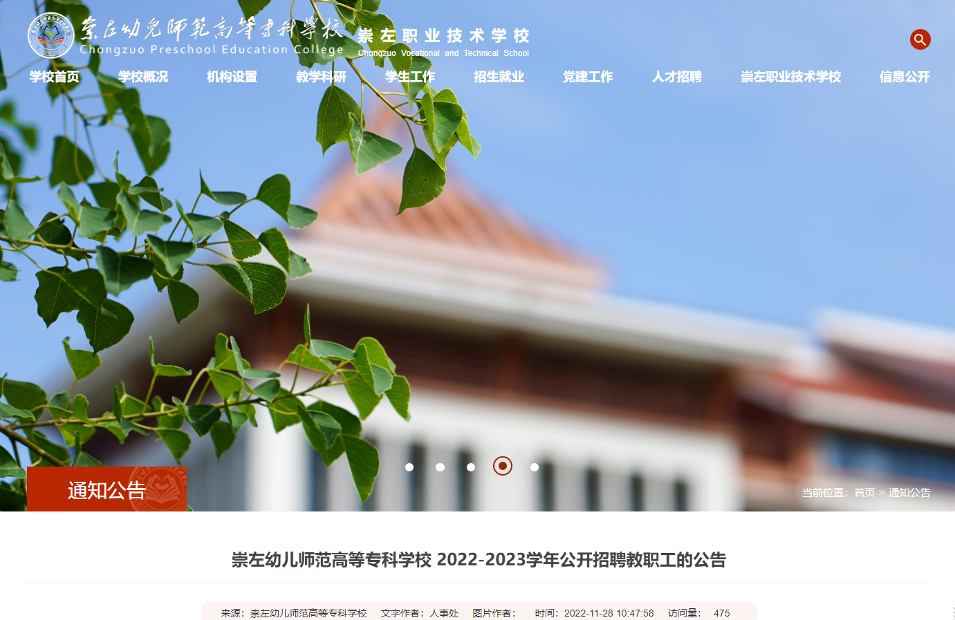 2022-2023學(xué)年廣西崇左幼兒師范高等專科學(xué)校公開招聘教職工公告已發(fā)布,報(bào)名時(shí)間:2022年12月5日17:00截止,現(xiàn)將招聘公告原文發(fā)布如下: