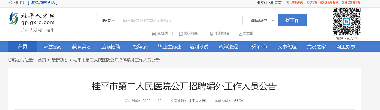 2022廣西貴港市桂平市第二人民醫(yī)院招聘編外人員25人,報名時間:2022年11月29日-2022年12月3日,現(xiàn)將招聘公告原文發(fā)布如下: