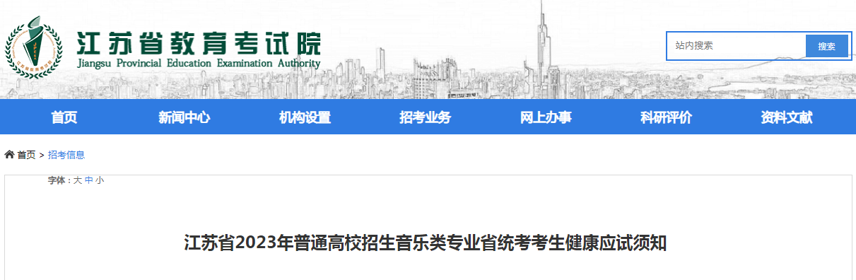 從江蘇省教育考試院了解到,江蘇省2023年普通高校招生音樂類專業(yè)省統(tǒng)考考生健康應(yīng)試須知已發(fā)布,詳細內(nèi)容如下: