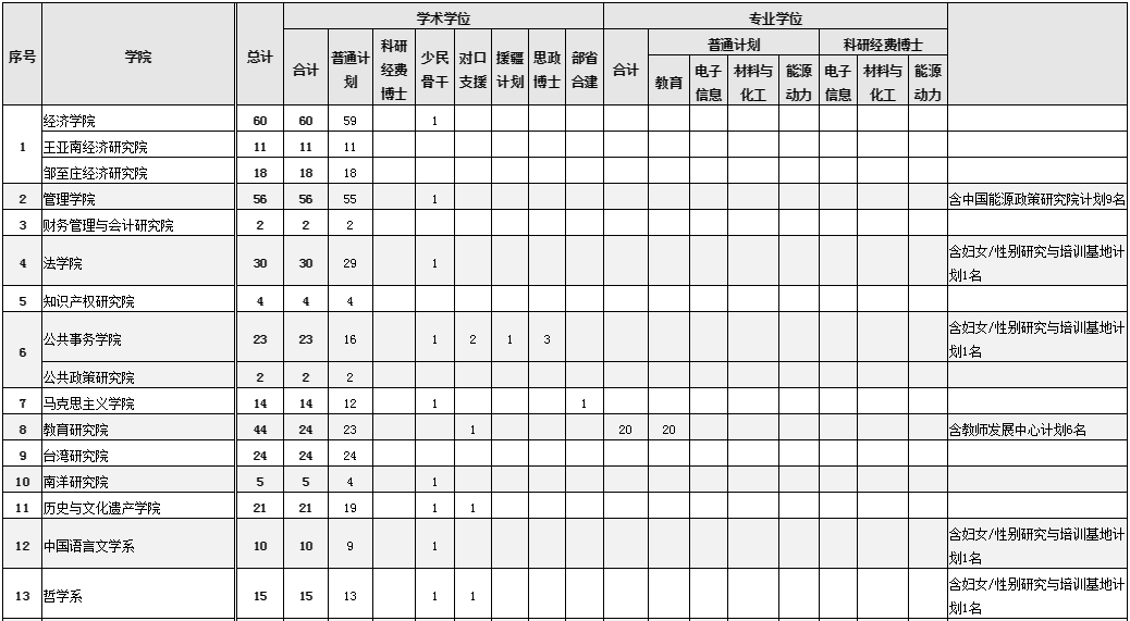 考博頻道從廈門大學(xué)招生網(wǎng)了解到,廈門大學(xué)2023年博士研究生招生計(jì)劃已公布,詳情如下: