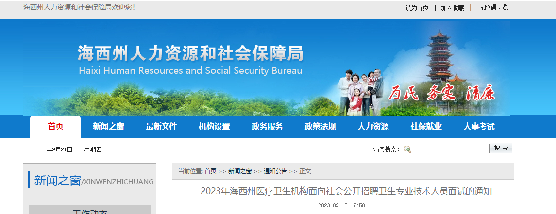 2023青海海西州醫(yī)療衛(wèi)生機構面向社會招聘衛(wèi)生專業(yè)技術人員面試時間已公布,面試時間:2023年9月23日(星期六),現(xiàn)將招聘公告原文發(fā)布如下: