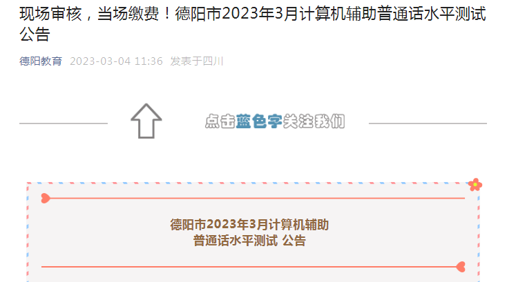 原文標(biāo)題:現(xiàn)場(chǎng)審核,當(dāng)場(chǎng)繳費(fèi)!德陽(yáng)市2023年3月計(jì)算機(jī)輔助普通話水平測(cè)試公告
