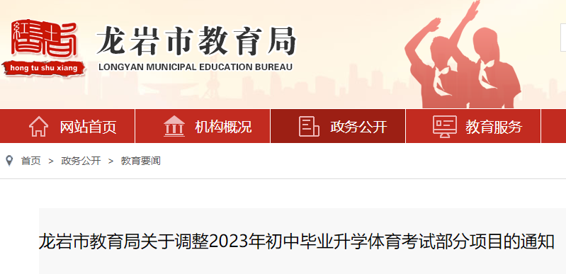 中考頻道從龍巖市教育局了解到,2023年福建龍巖中考體育考試項目部分調(diào)整的通知已公布,具體如下: