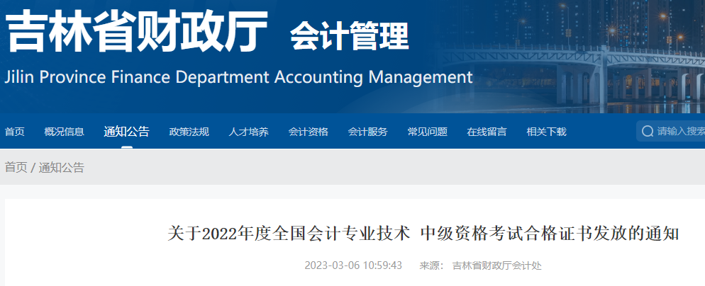 原文標(biāo)題:關(guān)于2022年度全國會計(jì)專業(yè)技術(shù) 中級資格考試合格證書發(fā)放的通知