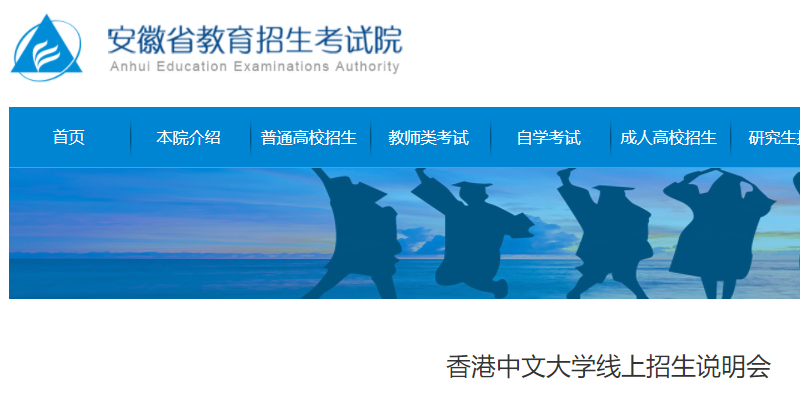 高考頻道從安徽省教育招生考試院了解到,香港中文大學(xué)全國普通高校線上招生說明會安排已公布,具體如下:
