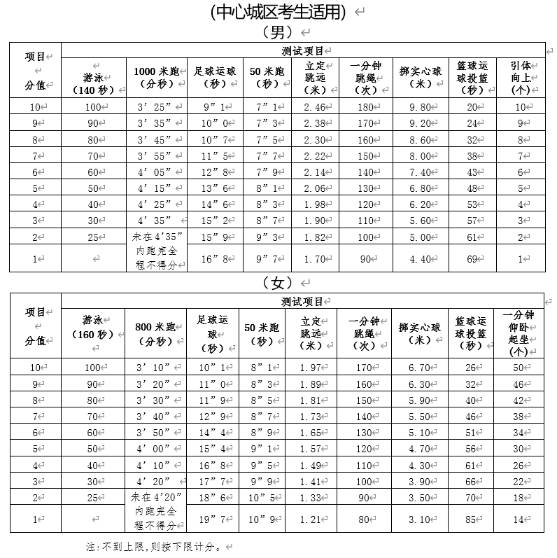 3.中考試項(xiàng)目評(píng)分標(biāo)準(zhǔn)