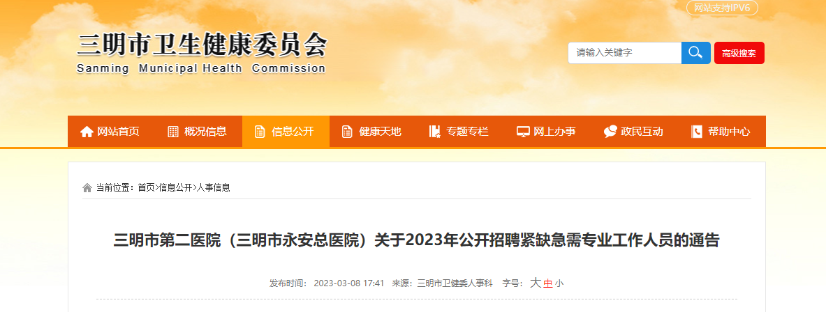 原文標(biāo)題:三明市第二醫(yī)院(三明市永安總醫(yī)院)關(guān)于2023年公開招聘緊缺急需專業(yè)工作人員的通告
