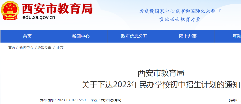 小升初頻道從西安市教育局了解到,陜西西安2023年民辦學(xué)校初中招生計(jì)劃通知已發(fā)布。詳情如下: