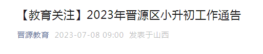 現(xiàn)將2023年晉源區(qū)小升初工作通告如下: