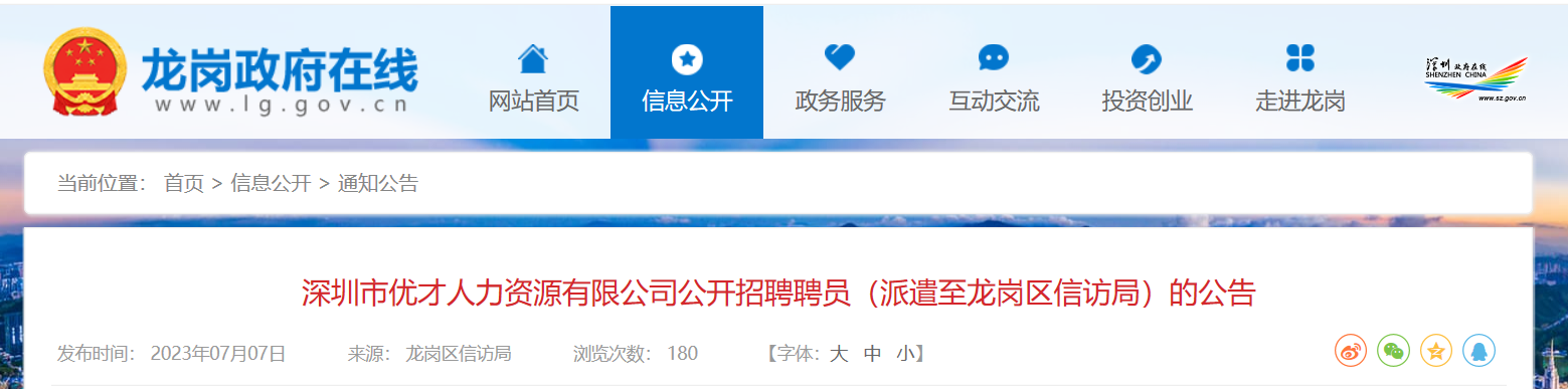 1.深圳市優(yōu)才人力資源有限公司公開招聘聘員(派遣至龍崗區(qū)信訪局)職位表