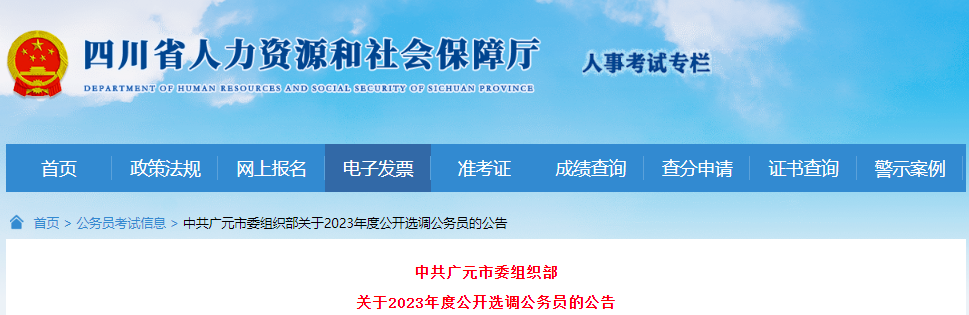 2023年四川廣元市委組織部公開選調(diào)公務(wù)員公告已公布,為了方便廣大考生的查閱,下面為您詳細(xì)介紹一下本次公開選調(diào)公務(wù)員的具體事宜,希望廣大考生及時關(guān)注,如有相關(guān)疑問,請關(guān)注公務(wù)員頻道為您實時做出的更新。