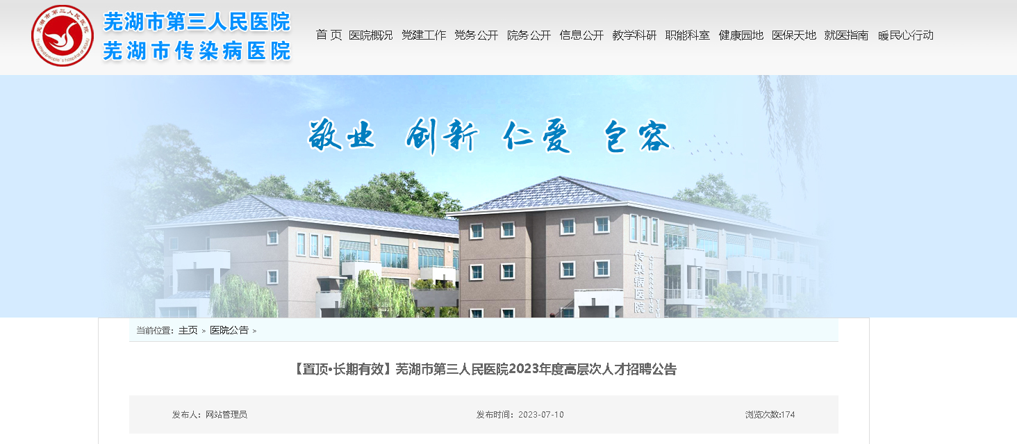 2023安徽蕪湖市第三人民醫(yī)院高層次人才招聘4人,郵箱:whssy283152@sina.com,現(xiàn)將招聘公告原文發(fā)布如下: