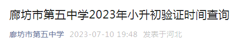 小升初頻道從廊坊市第五中學(xué)了解到,廊坊市第五中學(xué)2023年小升初驗證時間查詢公告已發(fā)布。詳情如下: