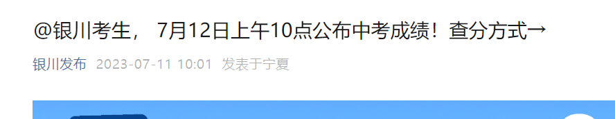 小編根據(jù)銀川發(fā)布“銀川考生, 7月12日上午10點公布中考成績!查分方式”得知,2023年寧夏銀川中考成績查詢時間為7月12日10時,查分入口如下: