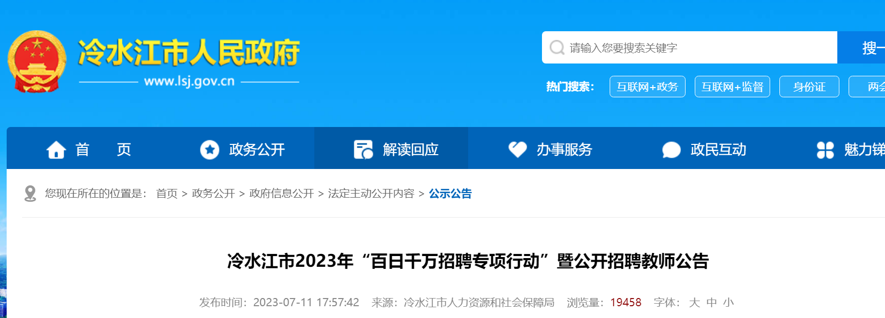 在冷水江市人民政府門戶網(wǎng)(http://www.lsj.gov.cn)發(fā)布招聘公告,公告時(shí)間:2023年7月11日至2023年7月19日。