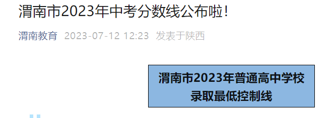 小編根據(jù)渭南教育發(fā)布“渭南市2023年中考分?jǐn)?shù)線公布啦”得知,2023年陜西渭南中考成績查詢?nèi)肟谝验_通,各縣市區(qū)普通高中學(xué)校錄取最低控制線如下:
