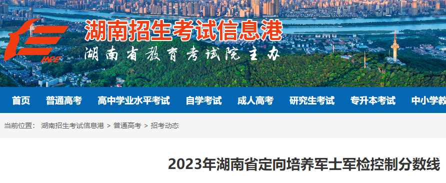 高考頻道從湖南招生考試信息港了解到,2023年湖南高考定向培養(yǎng)軍士軍檢控制分?jǐn)?shù)線已公布,具體如下: