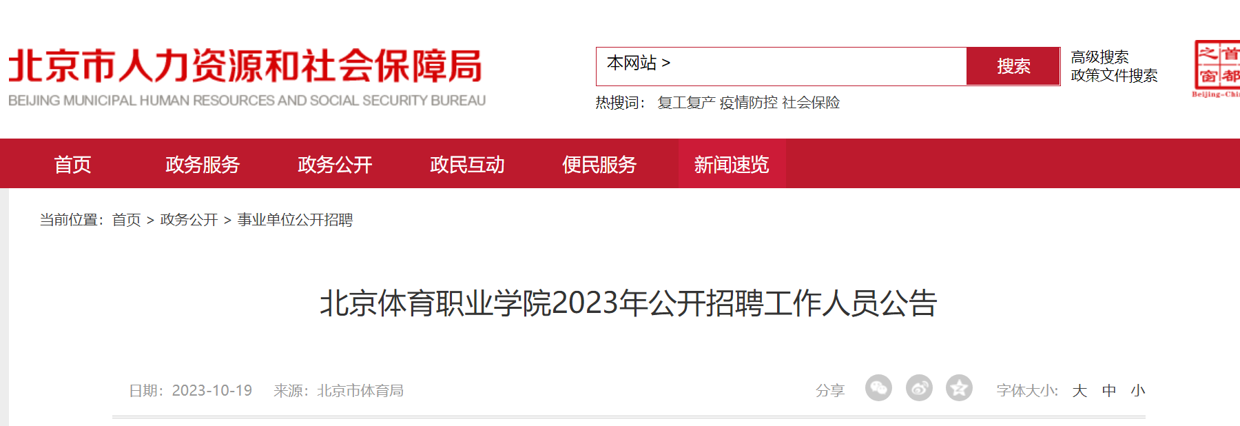2023年北京體育職業(yè)學院公開招聘工作人員公告已發(fā)布,報名時間:2023年10月31日上午9:30-11:00,下午14:30-16:00,逾期不予受理?,F(xiàn)將招聘公告原文發(fā)布如下: