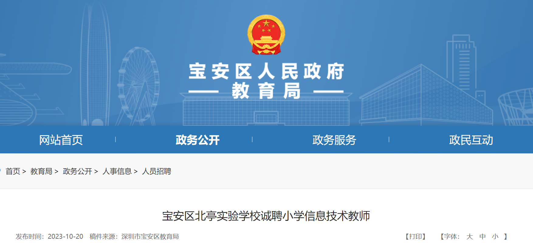 2023廣東深圳寶安區(qū)北亭實驗學(xué)校誠聘小學(xué)信息技術(shù)教師,招聘時間:2023年10月21日至10月29日?,F(xiàn)將招聘公告原文發(fā)布如下: