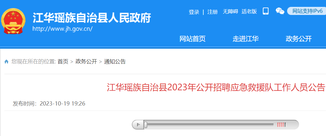 小編根據(jù)江華瑤族自治縣人民政府發(fā)布“江華瑤族自治縣2023年公開(kāi)招聘應(yīng)急救援隊(duì)工作人員公告”得知,2023湖南永州市江華瑤族自治縣招聘應(yīng)急救援隊(duì)工作人員6人,報(bào)名時(shí)間為10月30日至11月1日。