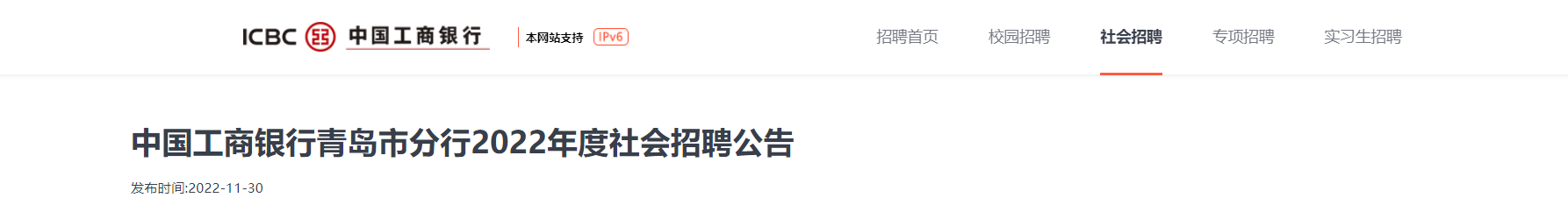 原文標(biāo)題:中國工商銀行青島市分行2022年度社會招聘公告