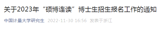 考博頻道從中國計量大學(xué)研究生了解到,中國計量大學(xué)2023年“碩博連讀”博士生招生報名工作的通知已發(fā)布,詳情如下: