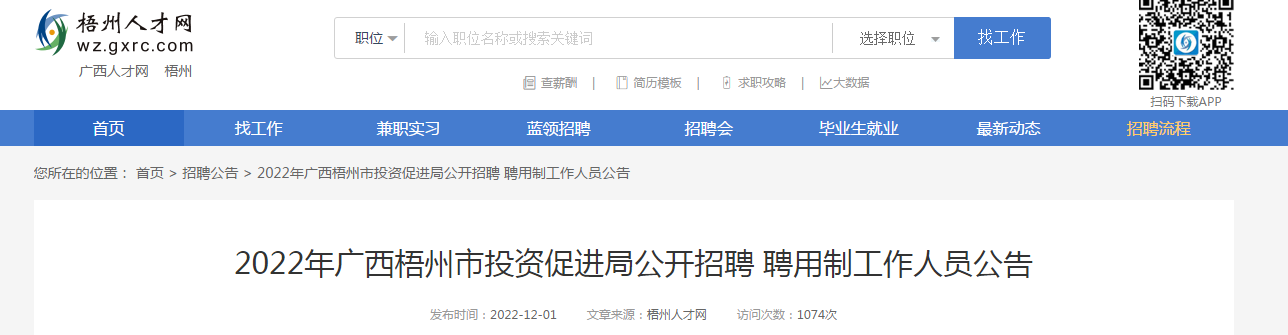 梧州市投資促進局根據工作需要,擬面向社會公開招聘聘用制工作人員。現將有關事項公告如下: