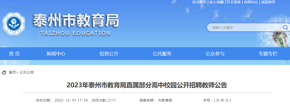原文標(biāo)題:2023年泰州市教育局直屬部分高中校園公開(kāi)招聘教師公告