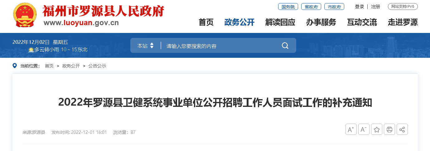 現(xiàn)將羅源縣2022年衛(wèi)健系統(tǒng)事業(yè)單位公開招聘工作人員面試有關(guān)問題補(bǔ)充通知如下: