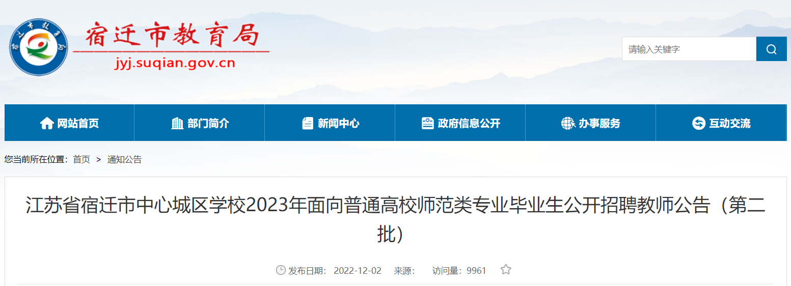 原文標(biāo)題:江蘇省宿遷市中心城區(qū)學(xué)校2023年面向普通高校師范類專業(yè)畢業(yè)生公開招聘教師公告(第二批)