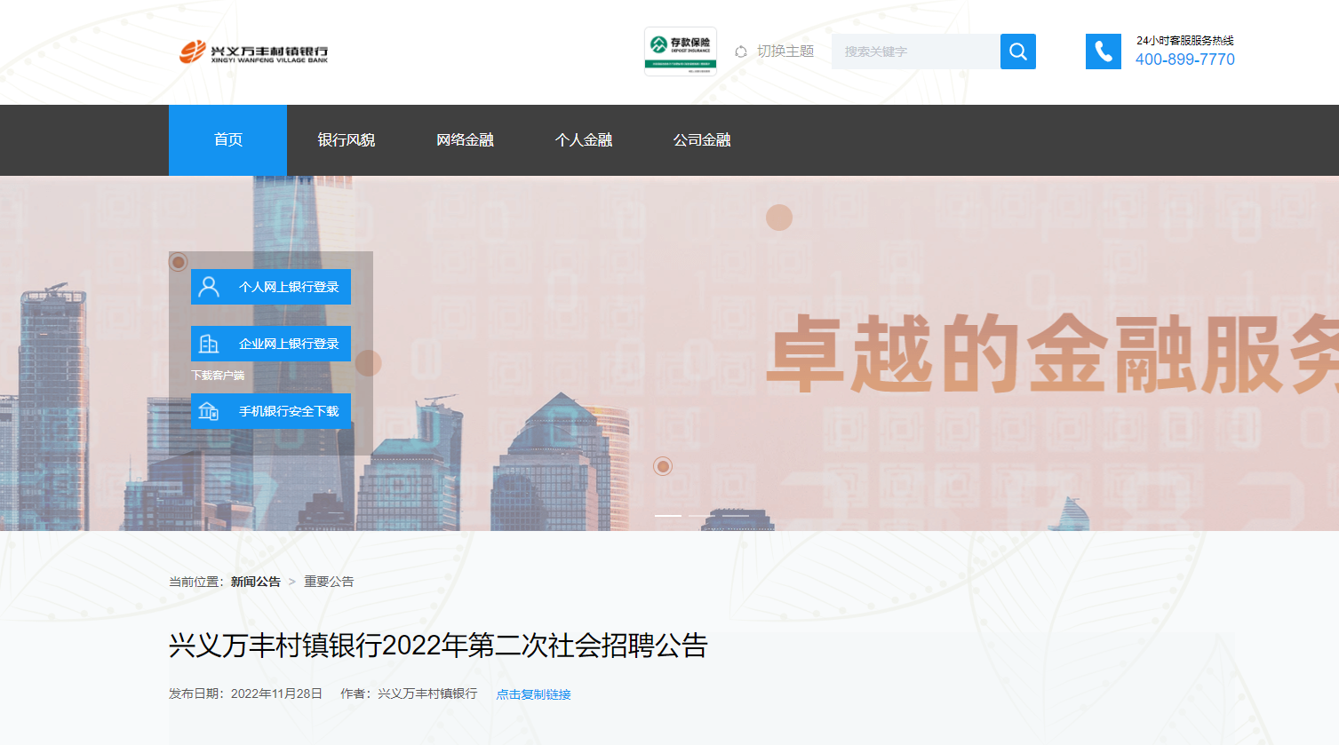 原文標題:興義萬豐村鎮(zhèn)銀行2022年第二次社會招聘公告