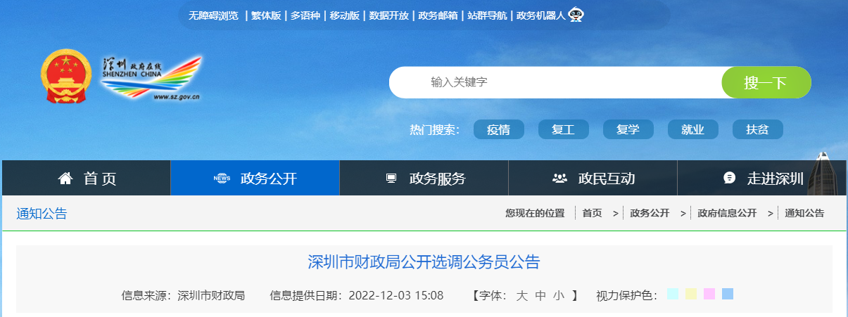 從深圳政府在線了解到,2022年廣東深圳市財政局公開選調(diào)公務員3名,報名時間自即日起截止到12月22日,相關事宜如下: