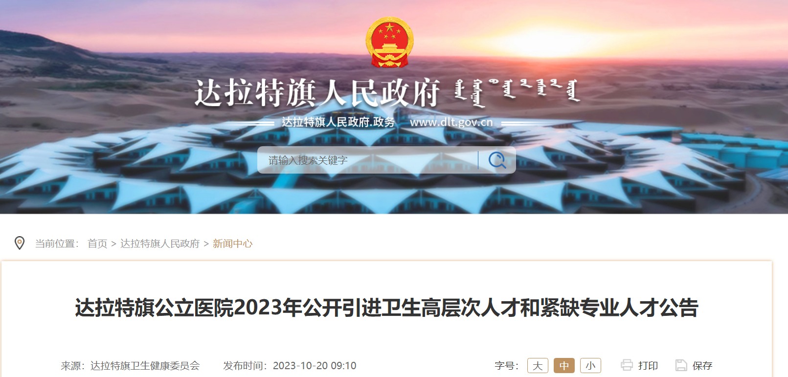 2023內(nèi)蒙古鄂爾多斯達拉特旗公立醫(yī)院引進衛(wèi)生高層次人才和緊缺專業(yè)人才9名,報名時間:自本公告發(fā)布之日起至2024年10月1日,現(xiàn)將招聘公告原文發(fā)布如下: