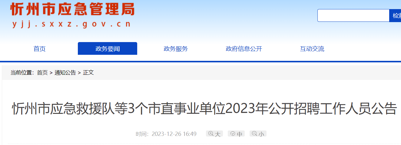 小編根據(jù)忻州市綜合檢驗(yàn)檢測(cè)中心發(fā)布“忻州市應(yīng)急救援隊(duì)等3個(gè)市直事業(yè)單位2023年公開(kāi)招聘工作人員公告”得知,2023山西忻州市應(yīng)急救援隊(duì)等3個(gè)市直事業(yè)單位招聘25人,報(bào)名時(shí)間2023年12月29日至2024年1月2日。
