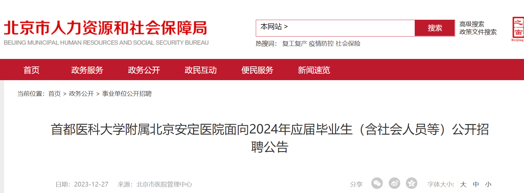 首都醫(yī)科大學附屬北京安定醫(yī)院面向2024年應(yīng)屆畢業(yè)生(含社會人員等)公開招聘公告已發(fā)布,報名時間:2024年1月10日前?,F(xiàn)將招聘公告原文發(fā)布如下: